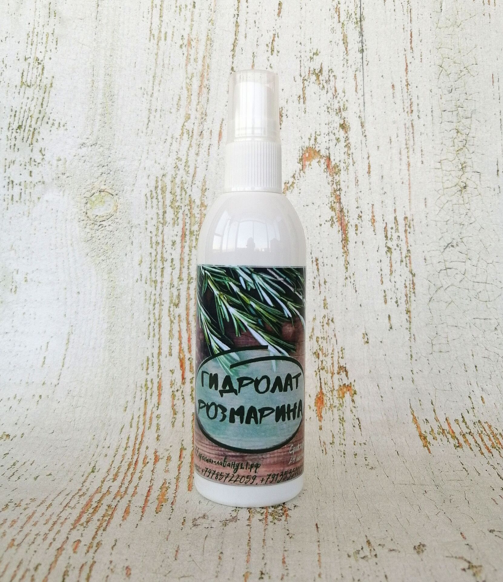 Гидролат (цветочная/душистая вода) розмарина изготовлен методом паровой дистилляции из молодых побегов и листьев розмарина.