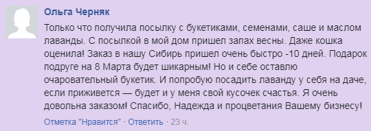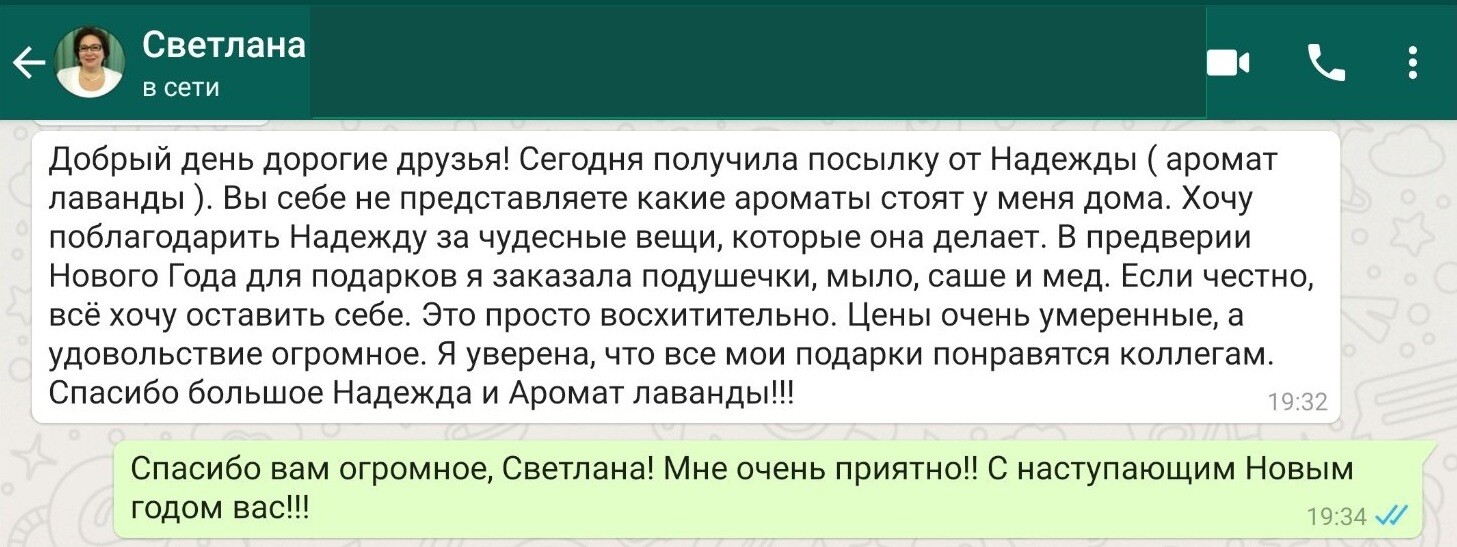 Настоящий аромат лаванды успокаивает и расслабляет. Я фанат этого сайта. Заказывала и пользоваласЬ почти всеми продуктами. Благодарна Надежде, все товары просто бомба!