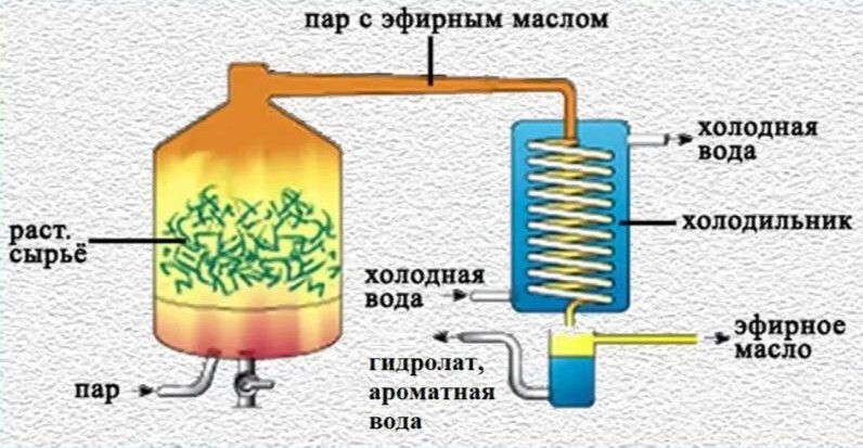 Выделяющийся пар - конденсат, собирается и охлаждается, превращаясь в гидролат/цветочную/душистую воду. 🚰